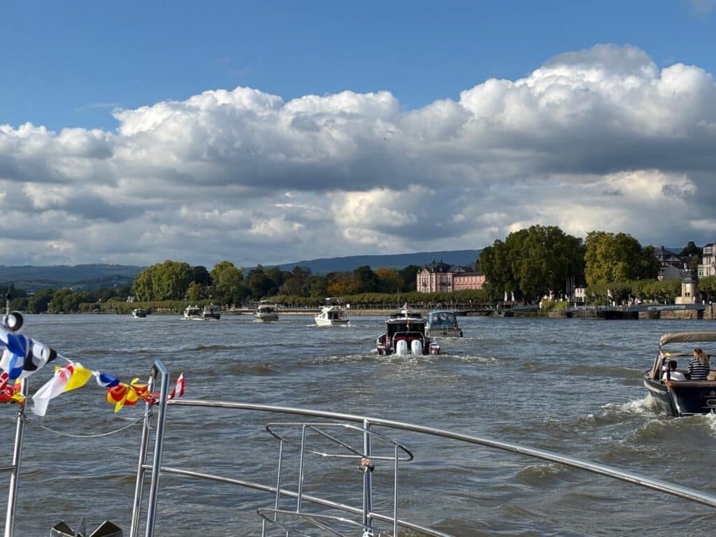 Der Saisonabschluss wird beim MCM jedes Jahr mit einem Abtuckern gefeiert. Dabei gehen die Boote geflaggt und in Formation auf den Rhein und fahren eine Runde einer hinter dem anderen. Bei bestem Wetter nahmen dieses Jahr am 27.9 ca. 25 Boote an dem Korso teil und anschließend wurde in der Schleifmühle das erlebte ausgiebig diskutiert und gefeiert.